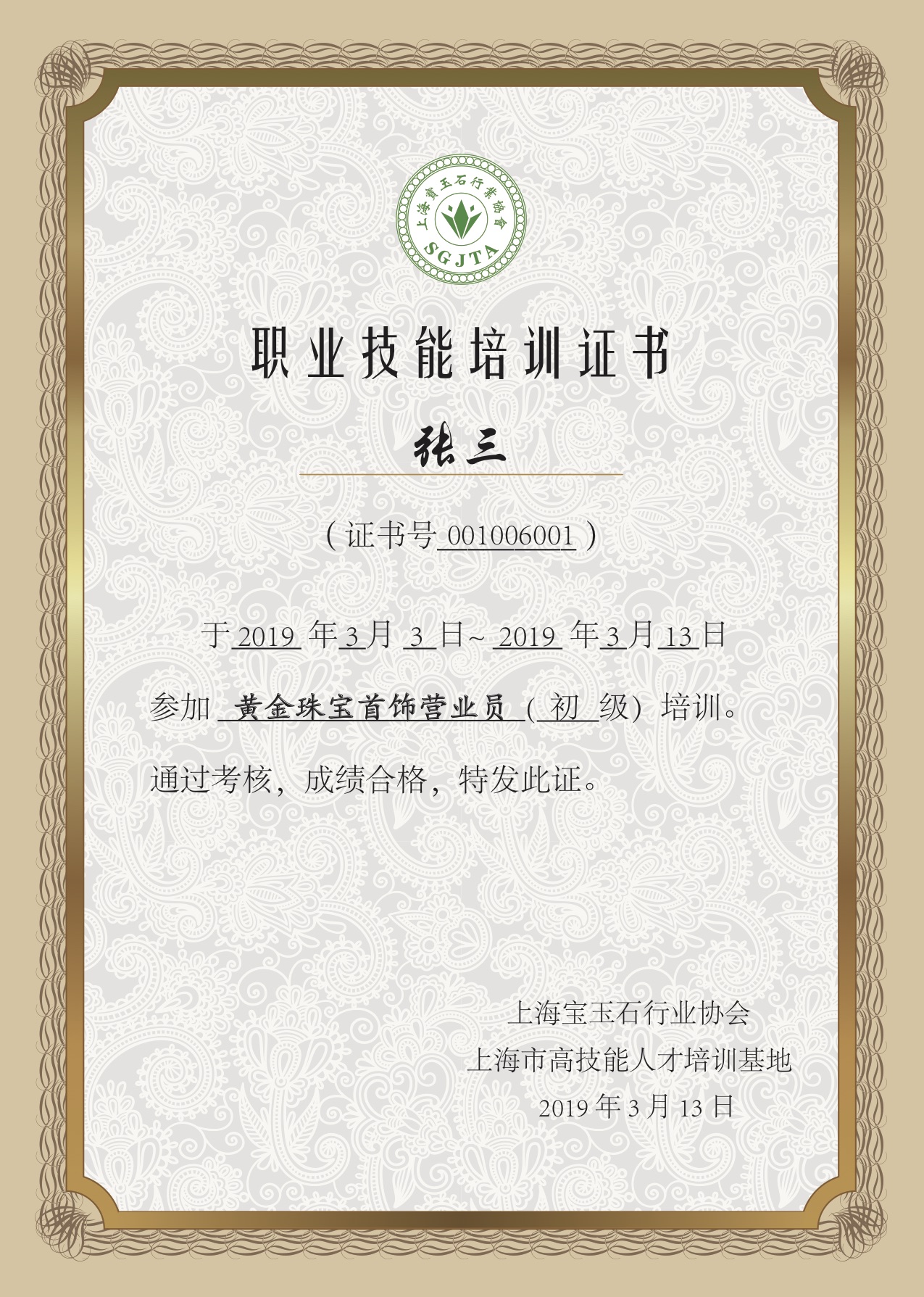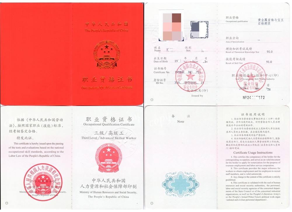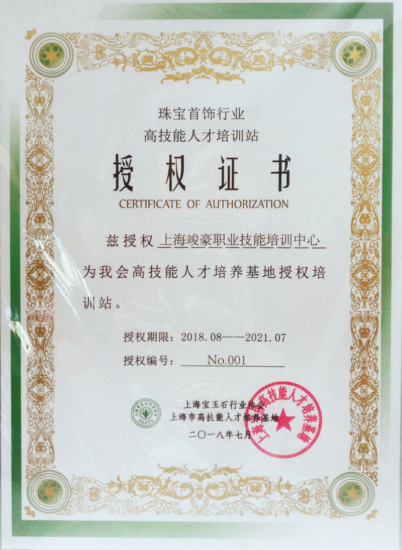 —— 珠宝高技能人才培训授权证 ——