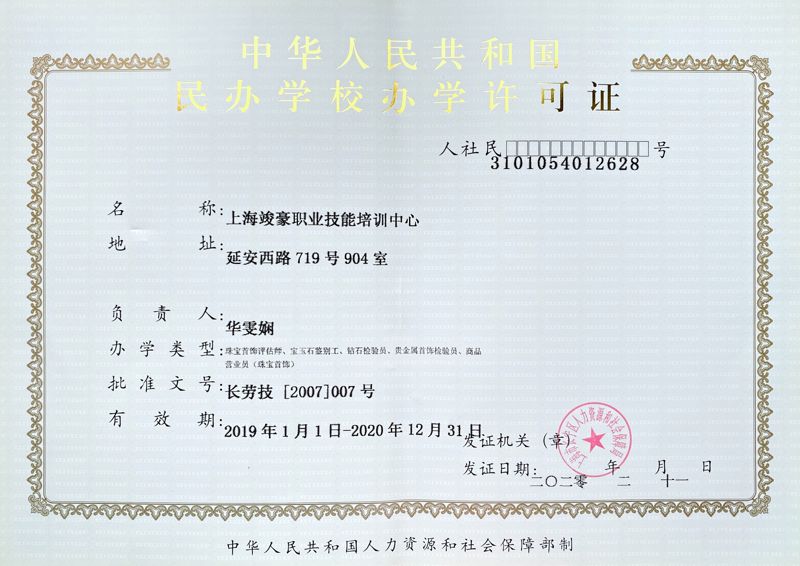 竣豪珠宝培训学校创立于2001年,是上海市劳动和社会保障局顺应珠宝产业发展需求,由上海市职业培训指导中心引进的专业教学机构(办学许可证编号:3101054012628)